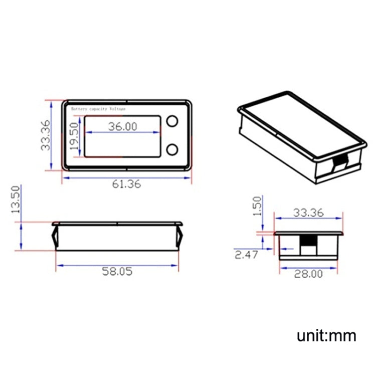 Waterproof LCD Two-wire Lead-acid Lithium Battery Digital Display Voltage Meter 8-72V (Blue)