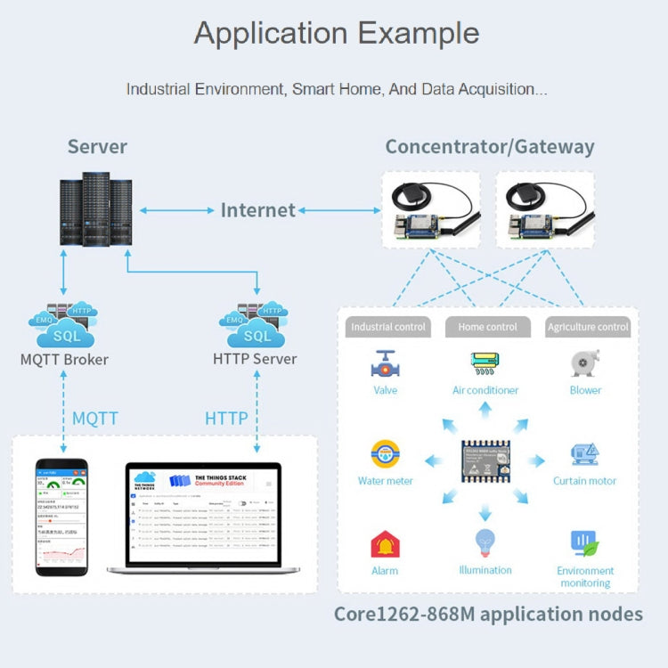 About The ProductThe Core1262-868M is a LoRa core module which incorporates new-generation SX1262 chip. It has featuress including mini size, long range transmission, high anti-interference capability, and so on. The module uses EU868 band, combined with LoRa gateway, it can be connected to servers like TTN server to build LoRa network.