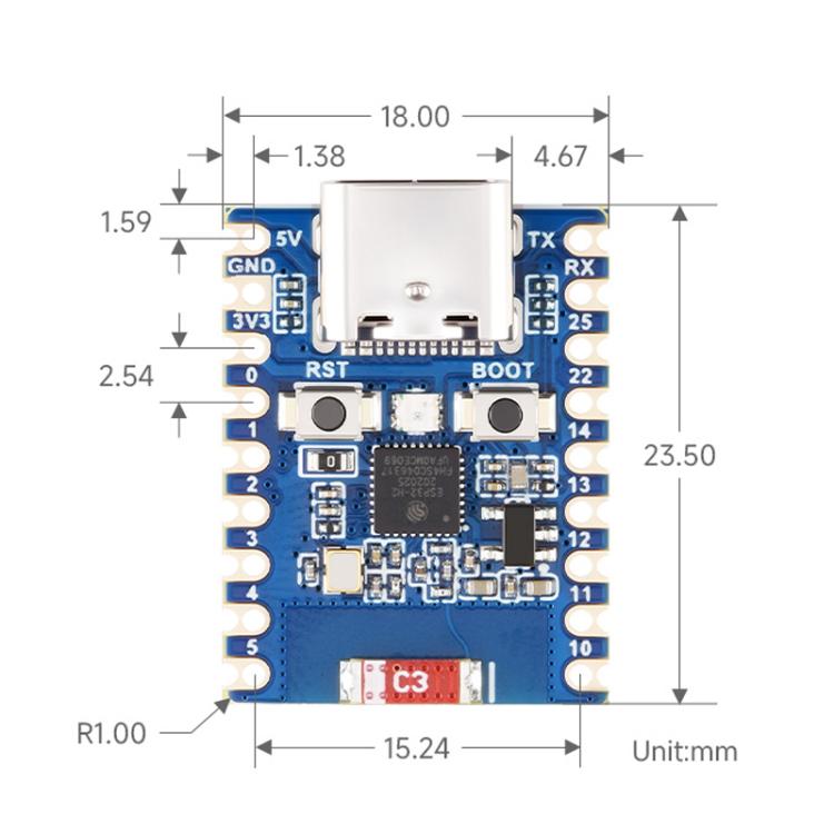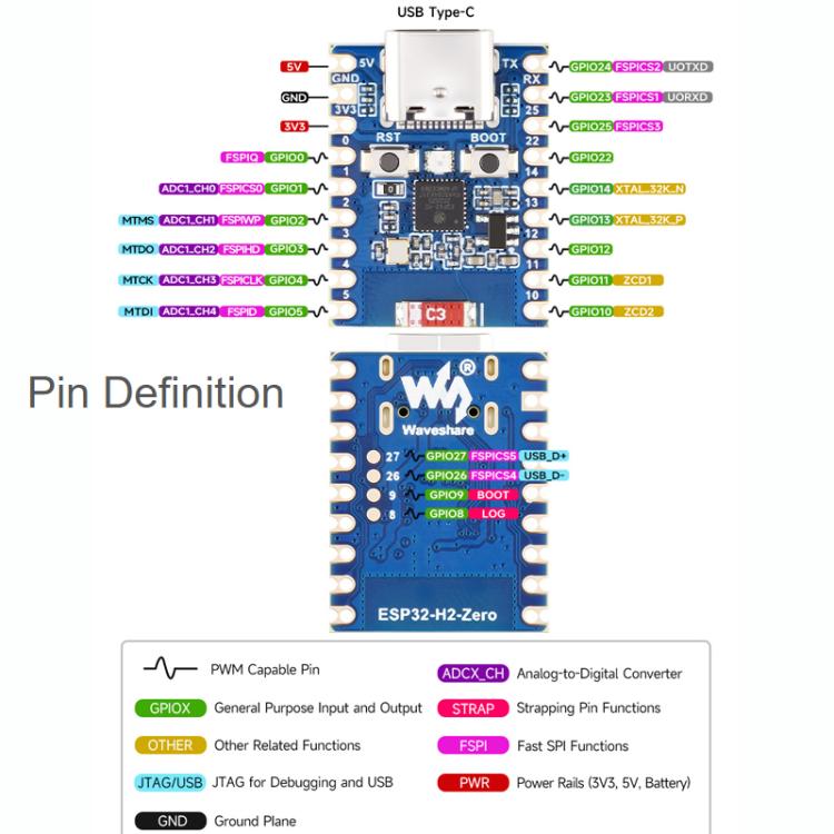 WAVESHARE ESP32-H2-Zero Mini Development Board Support Bluetooth / Zigbee / Thread Wireless Communication