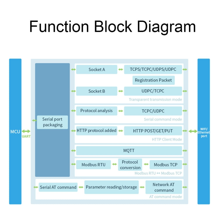 2. Integrate multiple functions into one, including serial port server, Modbus gateway, MQTT gateway, serial port to HTTPD client, etc.