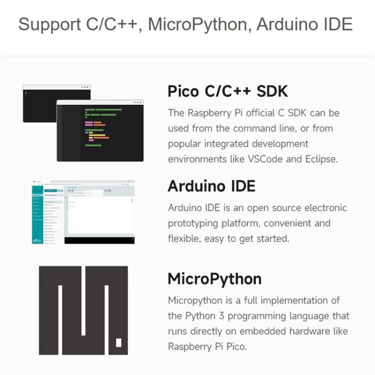 2. Unique dual-core, dual architecture, equipped with dual-core ARM Cortex-M33 processor and dual-core Hazard3 RISC-V processor, the clock running frequency are up to 150MHz, to support the user in the two architectures to switch between the flexible