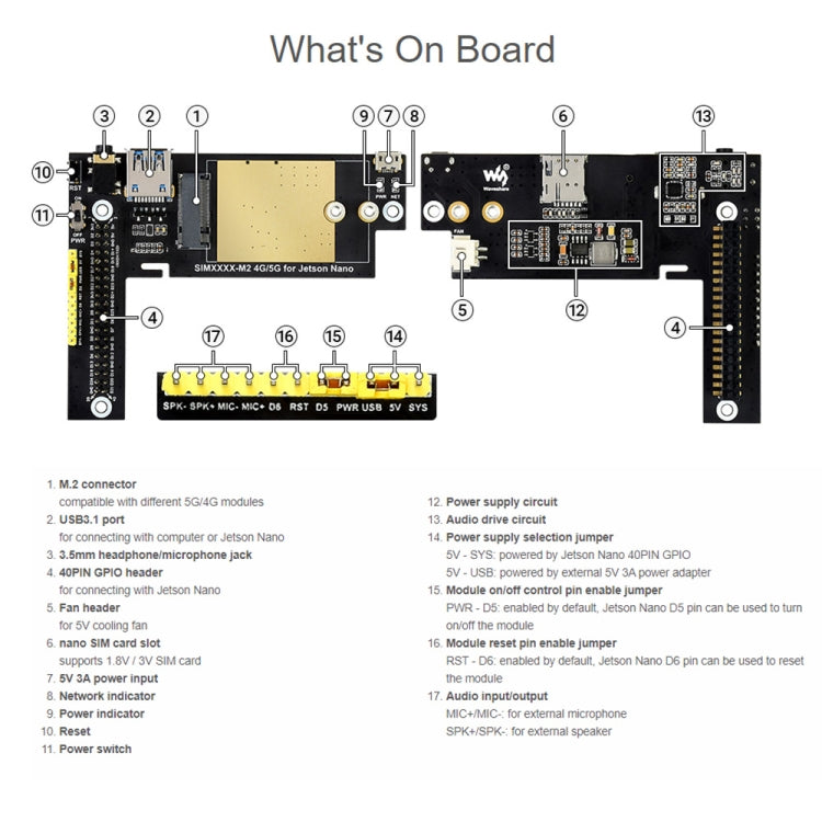Waveshare SIM8200EA-M2 5G Snapdragon X55 Multi Mode Multi Band 5G/4G/3G Module Expand Board for Jetson Nano, EU Plug