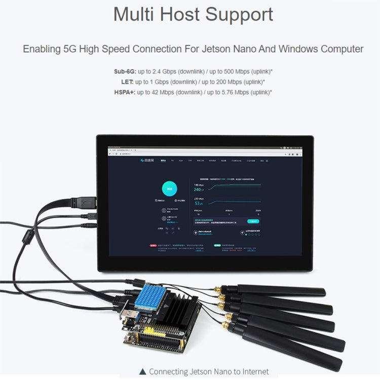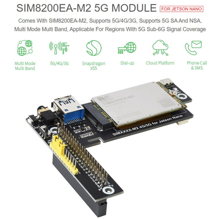 Waveshare SIM8200EA-M2 5G Snapdragon X55 Multi Mode Multi Band 5G/4G/3G Module Expand Board for Jetson Nano, US Plug