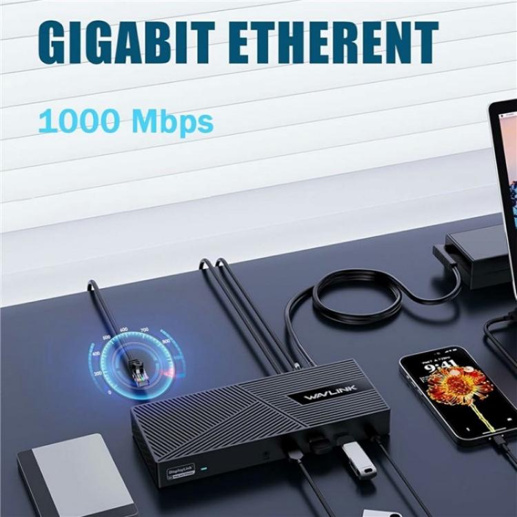 WAVLINK UG63PD25 15 in 1 DisplayLink Docking Station Support Triple Display 130W Power-in(EU Plug)
