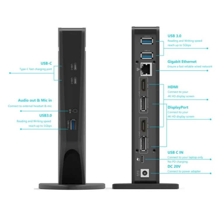 WAVLINK WL-UG69DK5 Laptop Dual 5K / 4K 60Hz Monitor Adapter USB 3.0 Docking Station, Plug:EU Plug