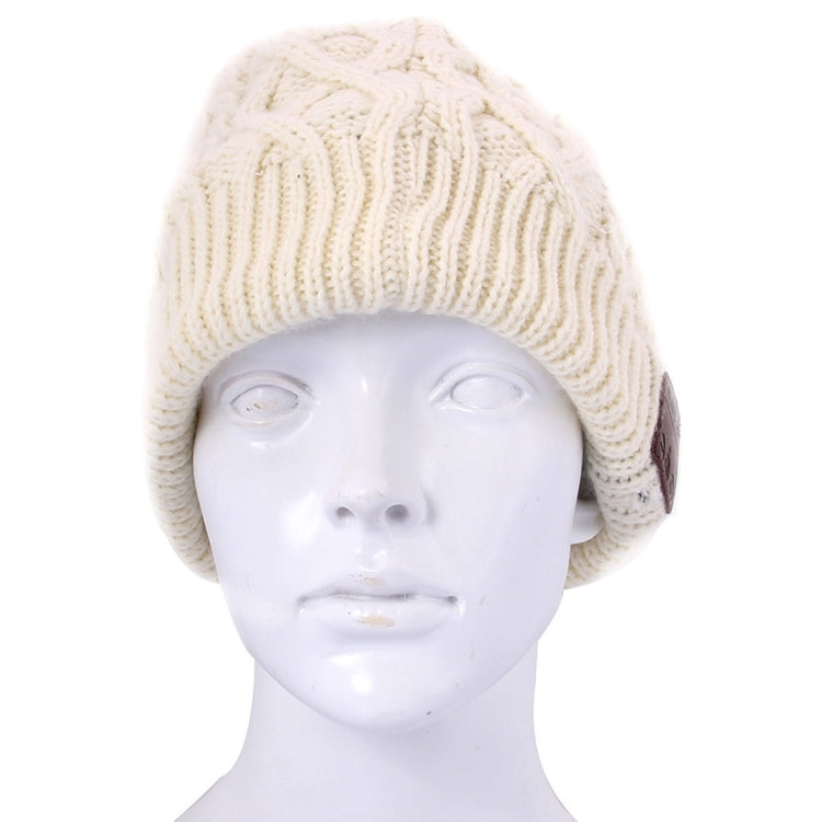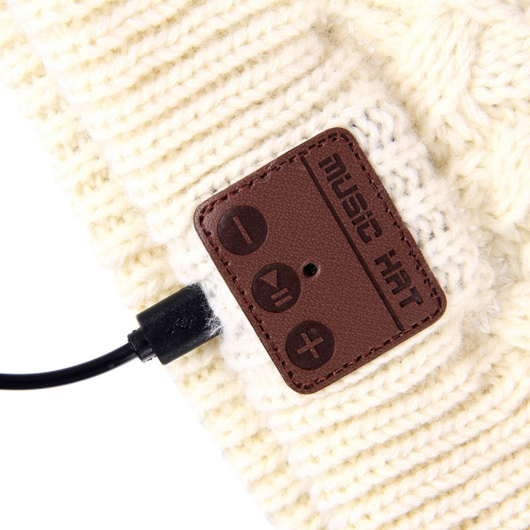 Wavy Textured Knitted Bluetooth Headset Warm Winter Beanie Hat with Mic for Boy & Girl & Adults(White)