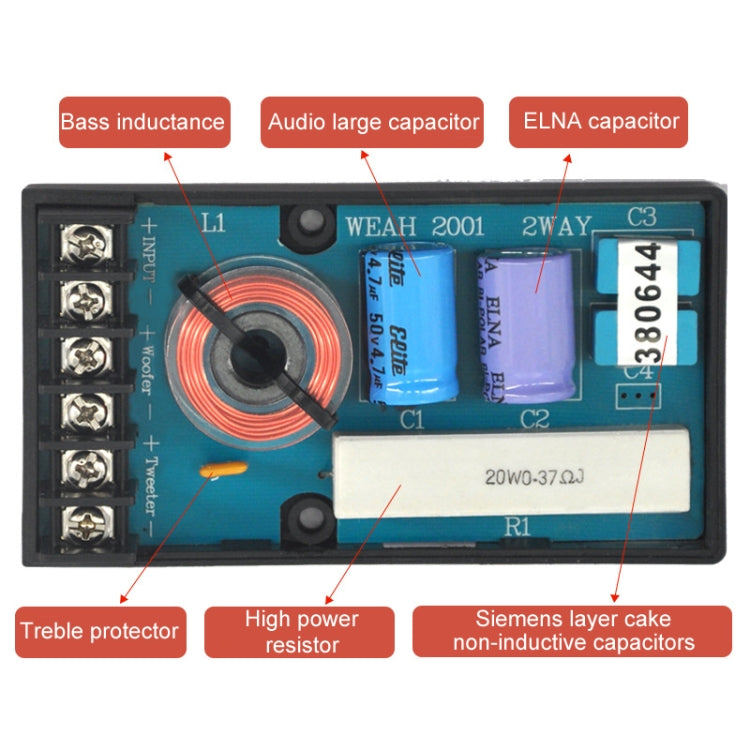 WEAH-2001 High And Low 2-Way Audio Crossover Car Speaker Conversion Divider