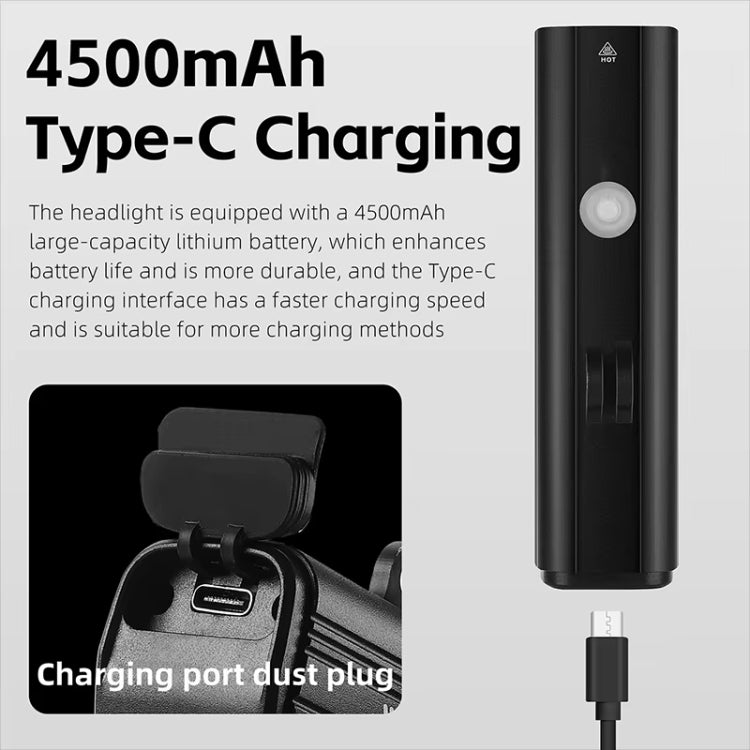 9. The headlight is equipped with a 4500mAh large-capacity lithium battery, which enhances the stability and durability of the battery life. It uses the Type-C charging interface, which charges faster and is suitable for more charging methods