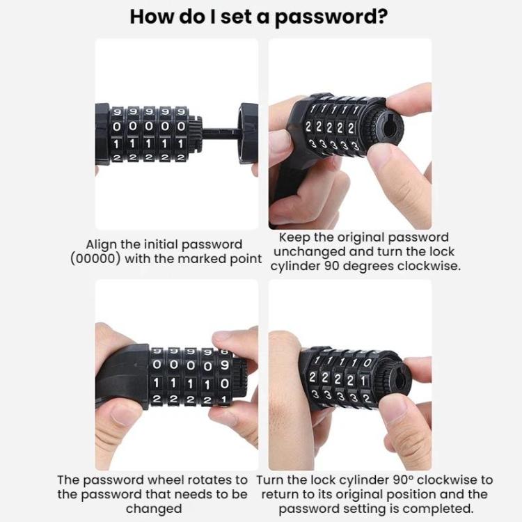 WEST BIKING Extended Portable Bicycle Steel Cable Anti-Theft Combination Lock(Black White)