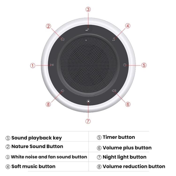 White Noise Sleep Instrument Player Speaker Bedroom Night Light(Grey)