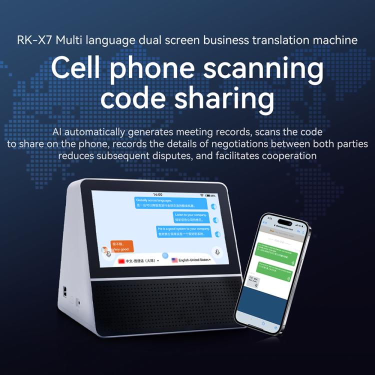 X7 7-inch HD Touch Dual-screen 2.4 / 5.0G Business Intelligent Voice Translator, Color: with US Plug