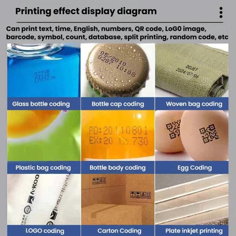 6. Print content: text, pictures, symbols, numbers, date, time, barcode, QR code, serial number, etc.