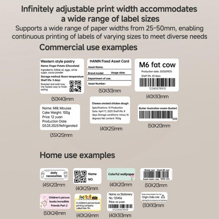 14. Acceptable Paper Sizes: Paper width: 25-50mm; Maximum paper roll diameter in the paper tray: 45mm