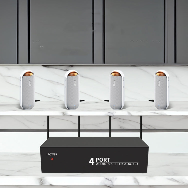 1. The stereo audio distributor can be used for stereo audio applications, providing 4 stereo audio outputs with the same audio source signal. It can distribute stereo audio signals from 1 source to 4 devices with compatible inputs.