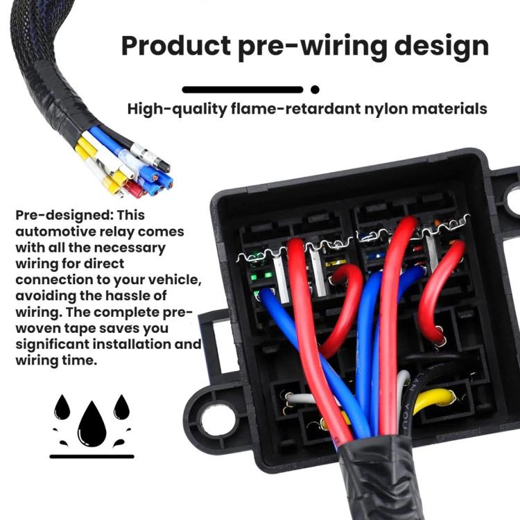 7. This automotive relay has all the necessary wiring, allowing direct connection to the vehicle and avoiding wiring hassles. The complete pre-wiring tape saves you significant installation and wiring time.