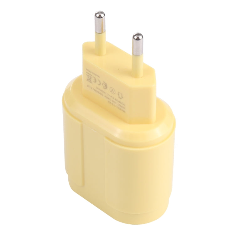 13-22 2.1A Dual USB Macarons Travel Charger, EU Plug(Yellow)