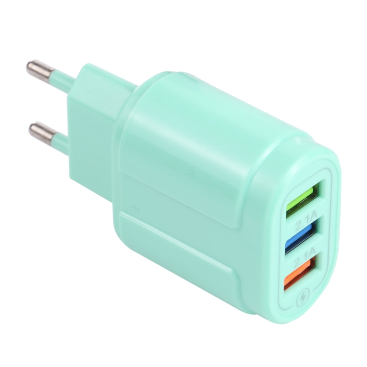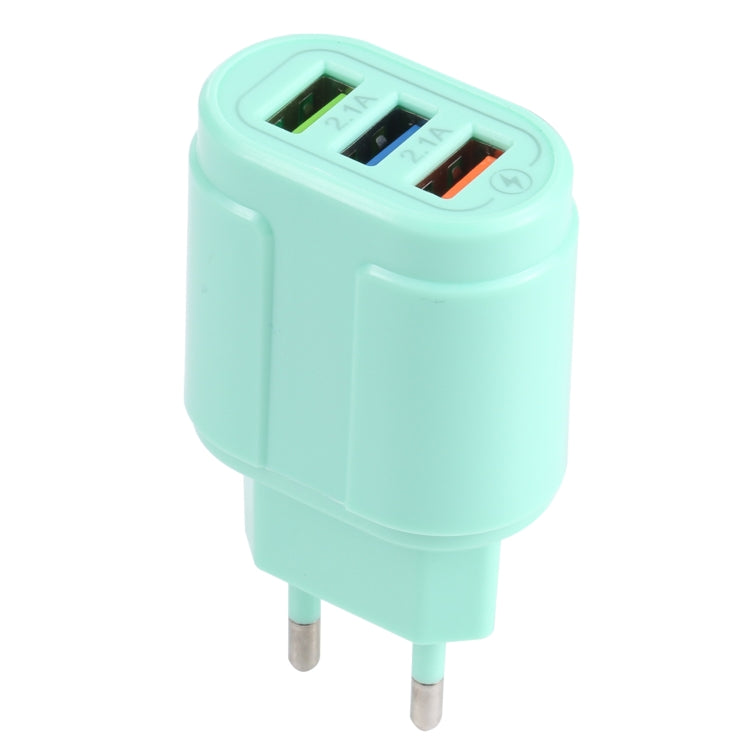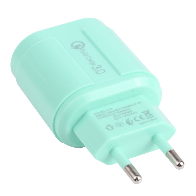 13-222 QC3.0 USB + 2.1A Dual USB Ports Macarons Travel Charger, EU Plug(Green)