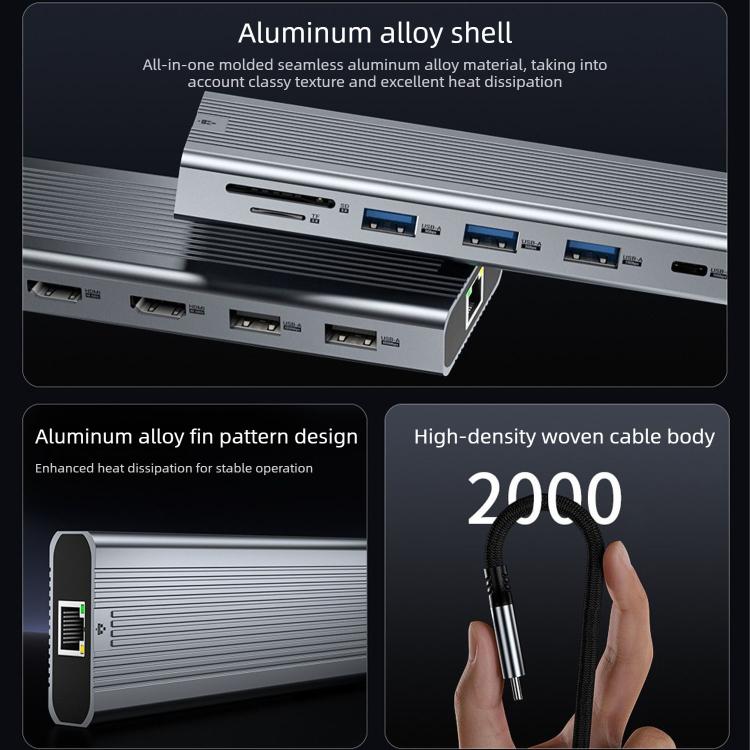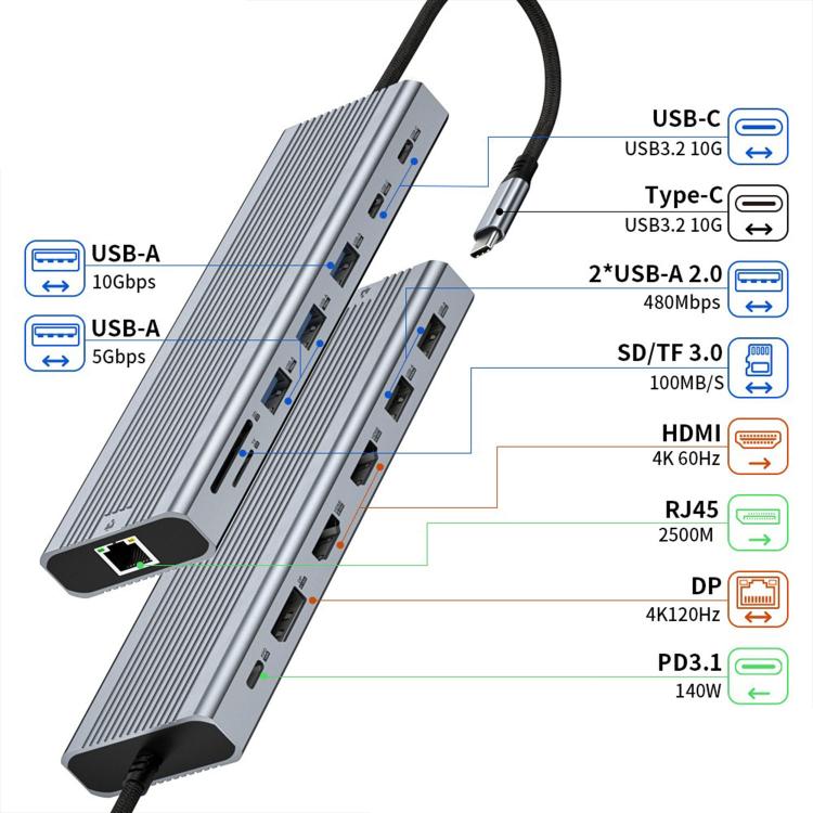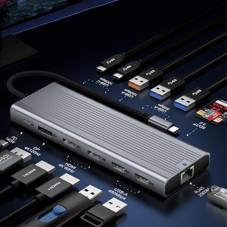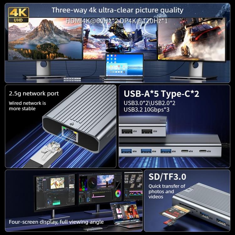20. Equipped with multiple ports including USB-A, Type-C, HDMI, DisplayPort, and SD/TF card readers for all-in-one device expansion.