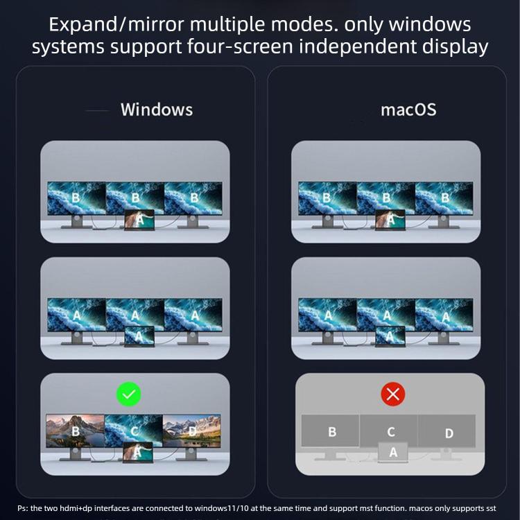 16. Supports extended and mirrored display modes; Windows systems enable up to four independent displays for enhanced multitasking productivity.