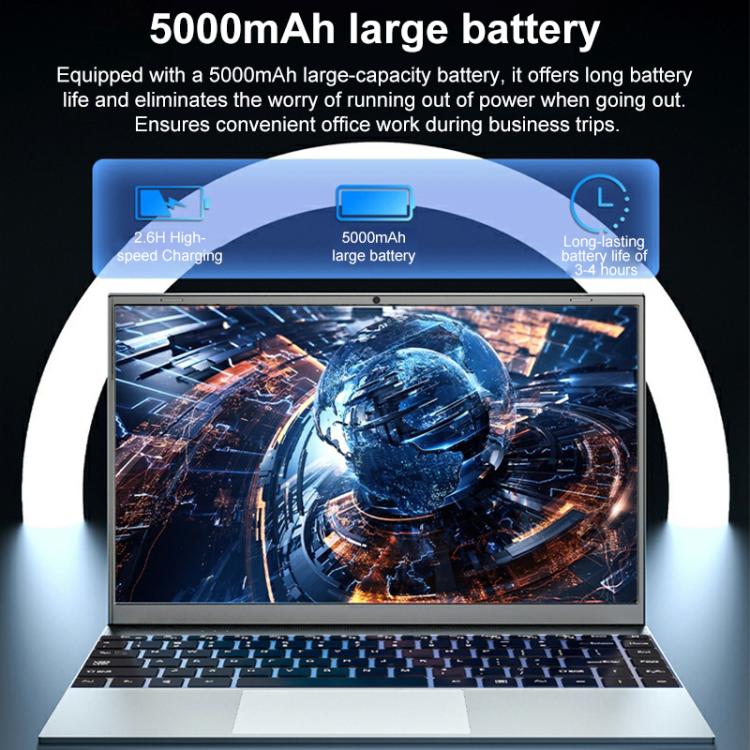 14 inch Ultrathin Portable Laptop, 8GB+256GB, Windows 10 Intel Celeron N3050 Dual Core, US Plug (Silver)