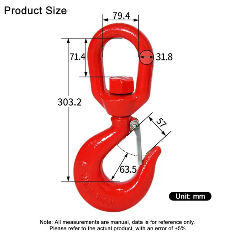 15T Load Swivel Hook Alloy Steel Clevis Hook Lifting Sling Tool(Red)