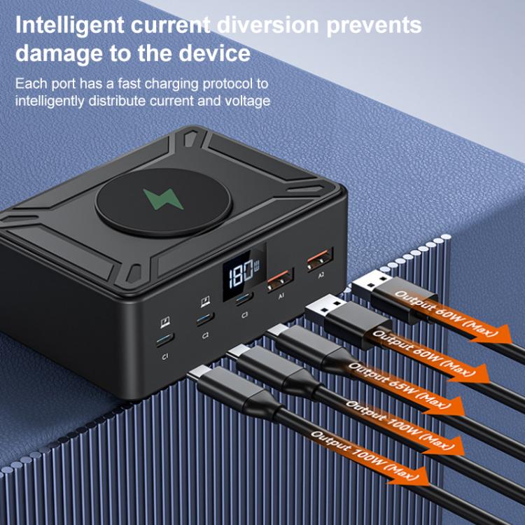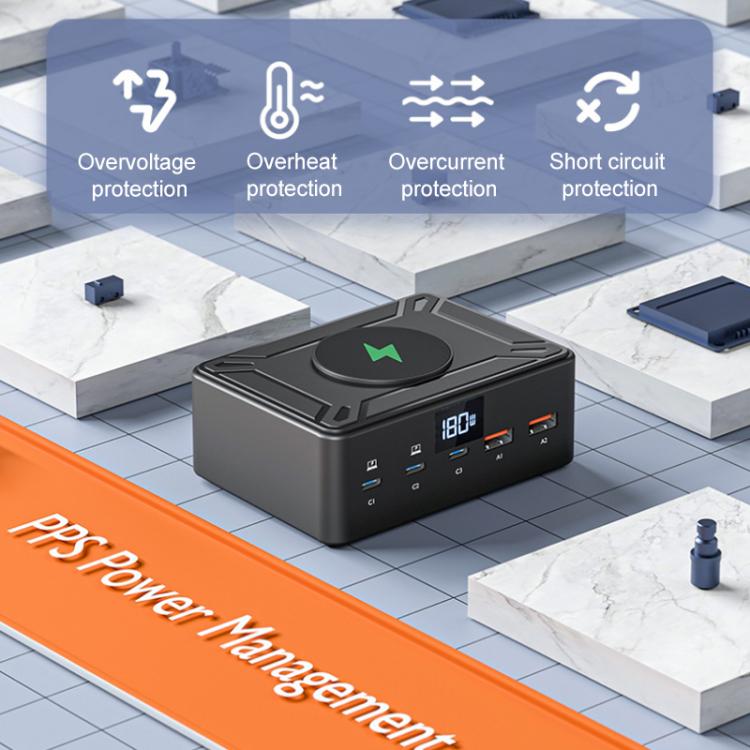 2. Including 2 x QC3.0 US interfaces, 3 x PD Type-C interfaces and a QI standard wireless charging area
