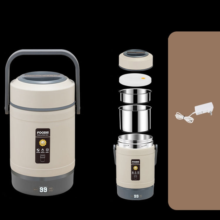 2.0L 304 Food Grade Insulated Lunch Box Electric Thermostat Lunch Bucket, CN Plug, Color: Temperature Display Beige Power Cord