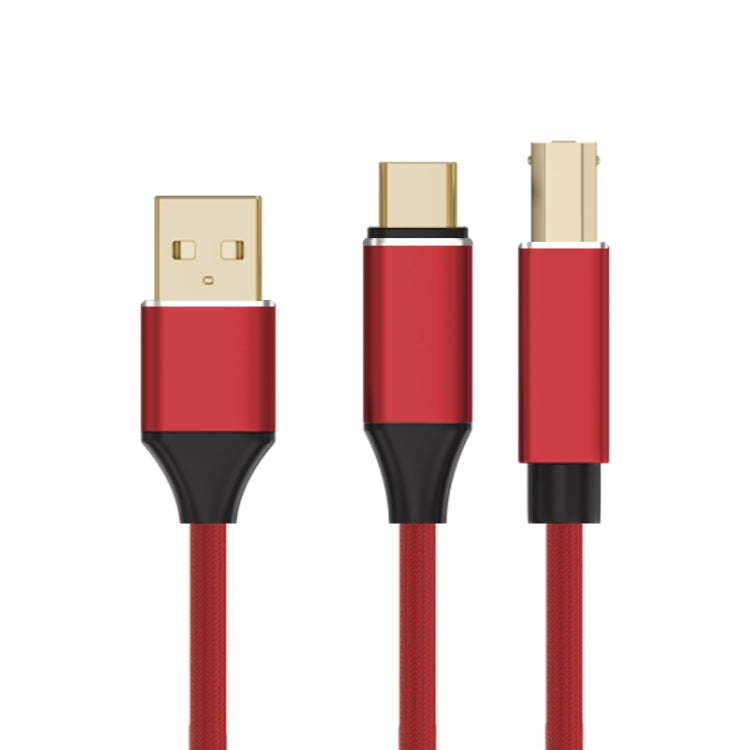 2 in 1 Type-C and USB-A to USB-B MIDI Instruments Printer Cable, Length: 1m, Length:1m(Red)