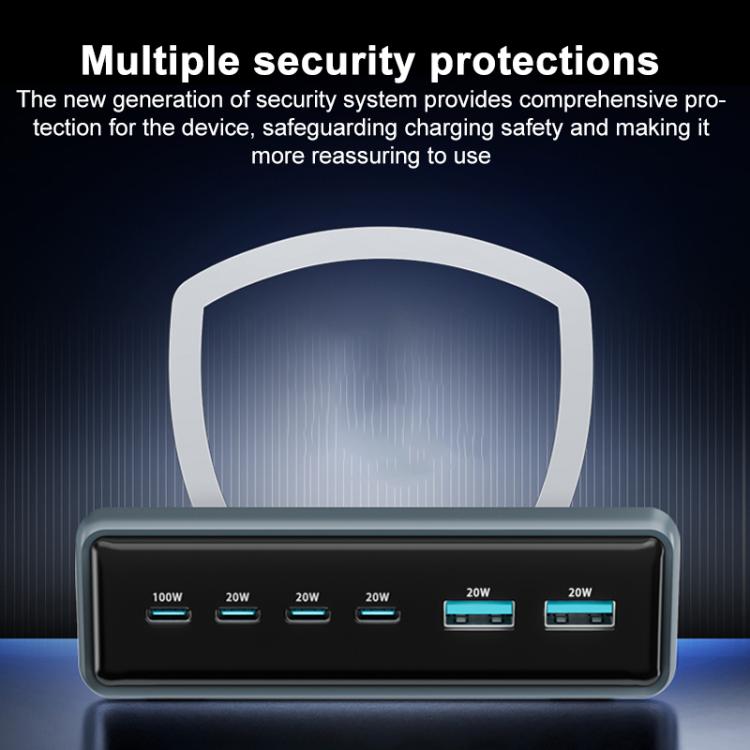 200W 4xUSB-C / Type-C and 2xUSB-A Multi-function 6 Ports GaN Desktop Fast Charger, Plug:AU Plug(White)