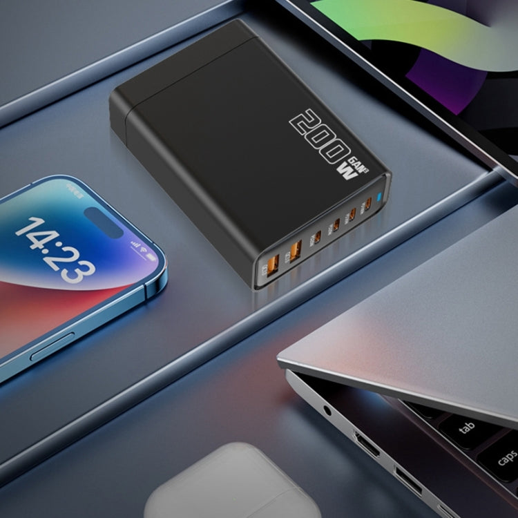 200W GaN 4 Type-C 2 USB Multi Ports Sharing Desktop Charger, Plug:AU Plug(Black)
