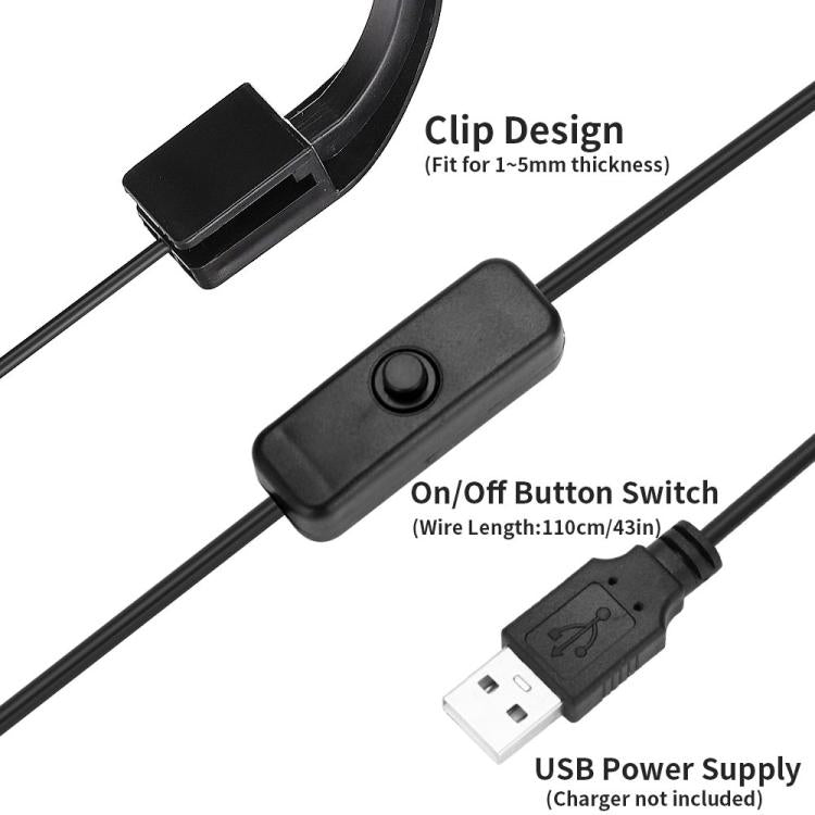 220V 5W Blue White Aquarium LED Clip Light with 12 LEDs USB Powered Mini Fish Tank Light for Aquatic Plants, Water Grass & Small Tanks(White)