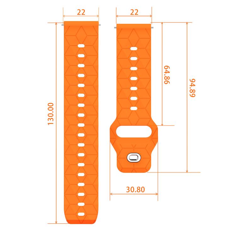 22mm Football Texture Snap Button Reverse Buckle Silicone Watch Band(Papaya Yellow)