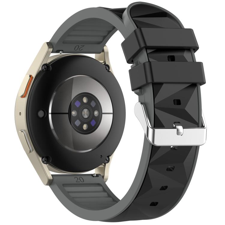 22mm Ice Crystal Texture Silver Pin Buckle Dual Color Silicone Watch Band(Black Grey)