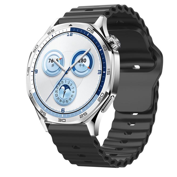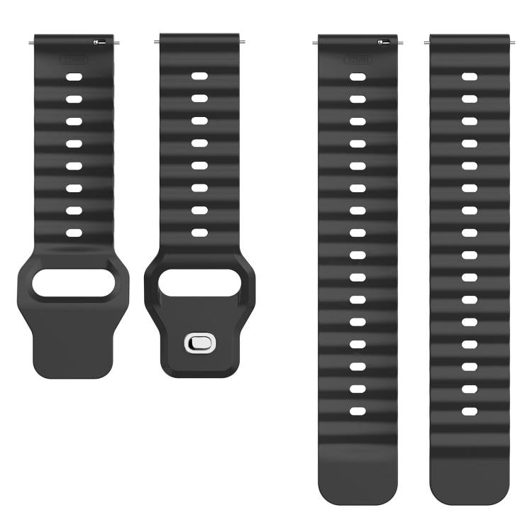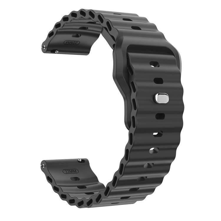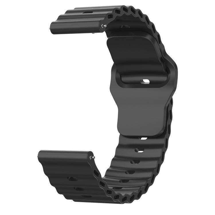 22mm Ocean Wave Texture Reverse Buckle Silicone Watch Band(Black)