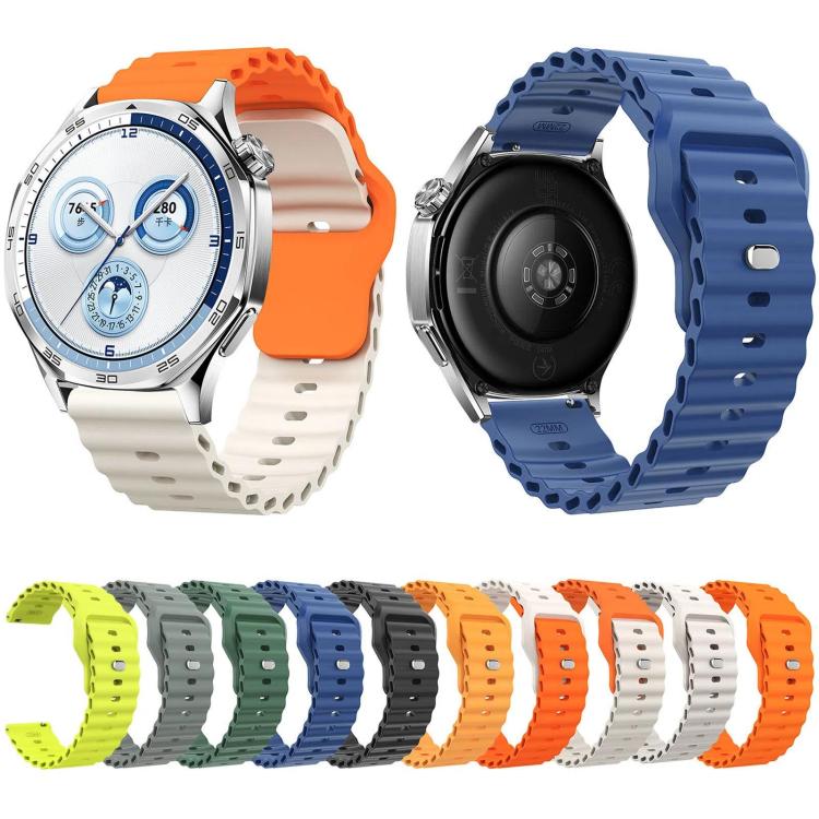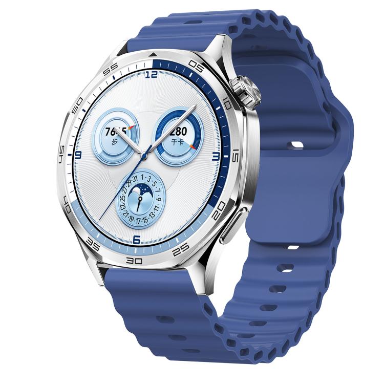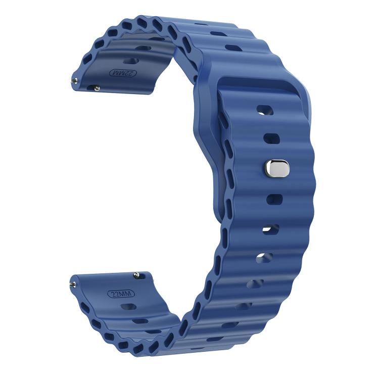 22mm Ocean Wave Texture Reverse Buckle Silicone Watch Band(Midnight Blue)