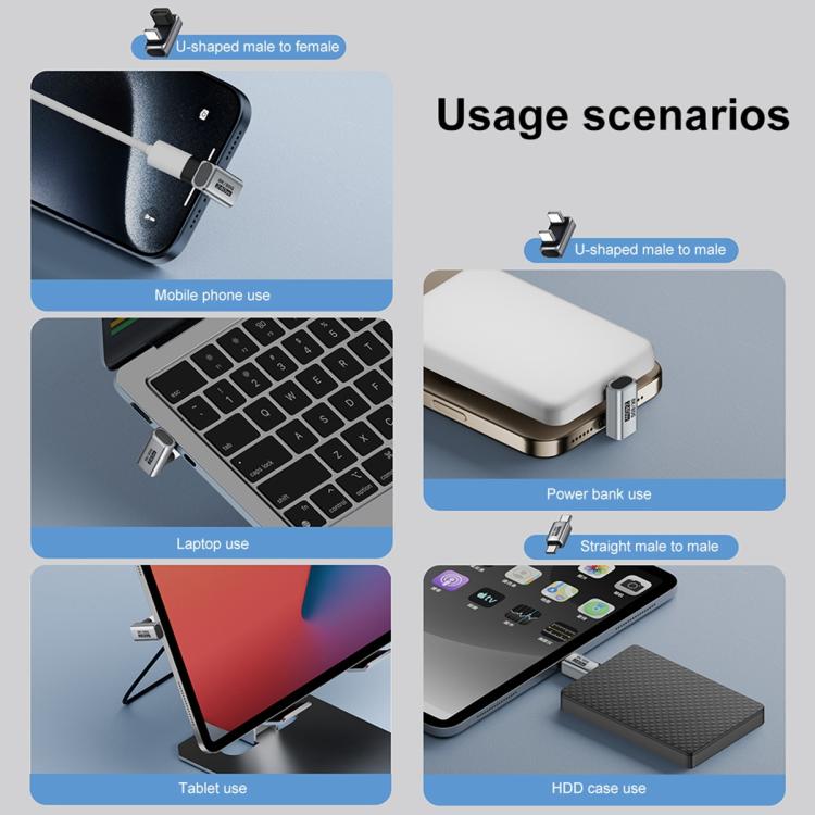 240W 80Gbps Type-C Full Function Adapter, Model:U-shaped Male to Female(Black)