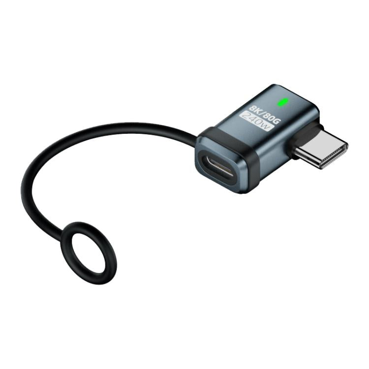 240W USB-C / Type-C Port Full-Function Aluminum Alloy Adapter with Lanyard, Style:Side Bend(Blue)