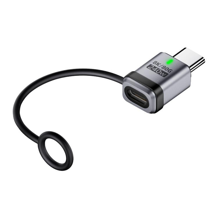 240W USB-C / Type-C Port Full-Function Aluminum Alloy Adapter with Lanyard, Style:Straight Head(Silver)