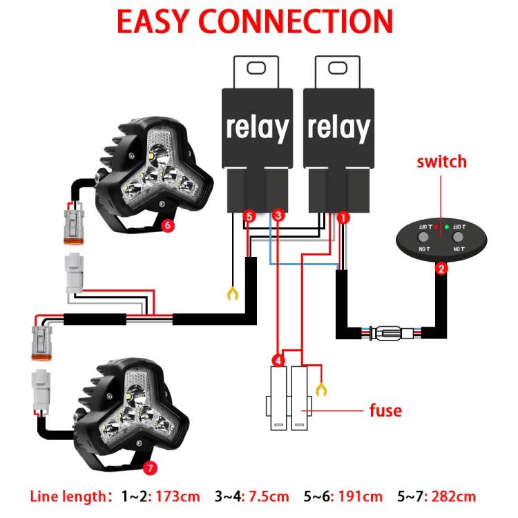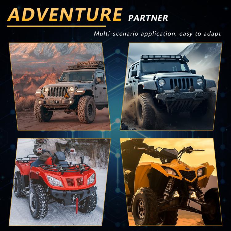 6. DC 9-30V working voltage is suitable for various vehicles, such as off-road vehicles, compatible with almost all jeeps, cars, trucks, motorcycles, SUVs, ATVs, boats, etc.