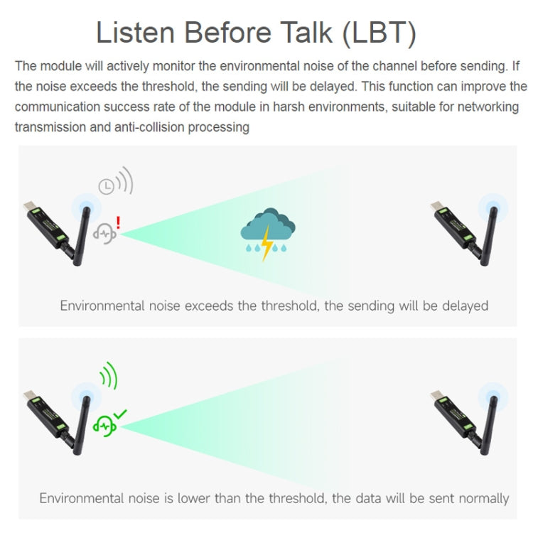 1. This product is a wireless data transmission terminal based on the USB interface of the SX1262 solution. Using LoRa modulation and demodulation technology, it has the characteristics of strong anti-interference and long-distance communication, and the communication distance can reach 5KM. It supports point-to-point, point-to-multiple, relay networking, AES encryption and other communication methods. It is small in size and easy to install. It is suitable for standard or non-standard user protocol wireless data transmission and equipment control of industrial control.