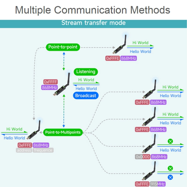 - Frequency band: Sub-GHz (410~510MHz, 850~930MHz)