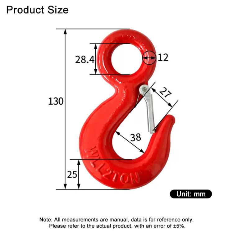 3. Equipped with a spring-loaded safety latch that automatically retracts, effectively preventing accidental detachment of steel cables and chains during lifting operations, enhancing operational safety.