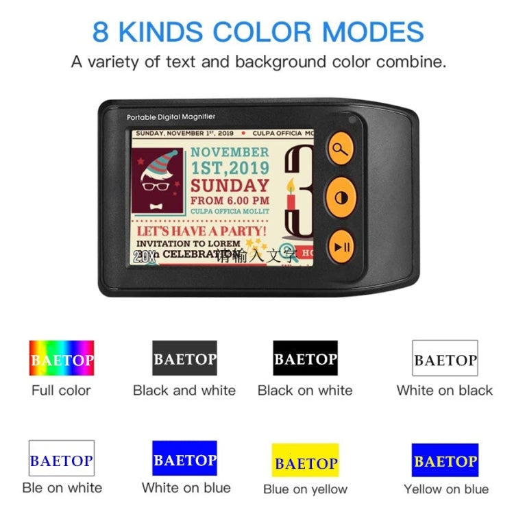 1. Function: An electronic auxiliary reading tool designed to solve various inconveniences of middle-aged and elderly people and people with amblyopia in reading newspapers and daily life. It adopts humanized design and can be used when the handle is folded or opened in close-up mode, with a small size and zero distance. Design, easy to carry, replace traditional reading glasses, solve the problem of low vision groups.