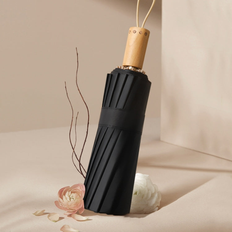 3-fold 16-bone Hand Open Umbrella Retro Wood Handle Black Glue Sunshade Umbrella(Jiangnan)
