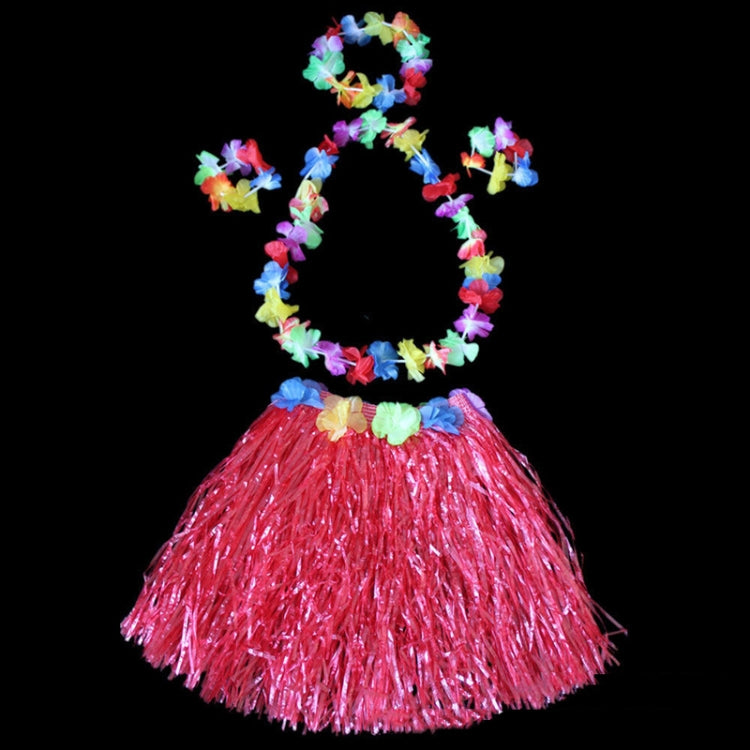 30cm Halloween Hula Show Costume Hawaii Party Decoration, Color: Grass Skirt+Garland Red