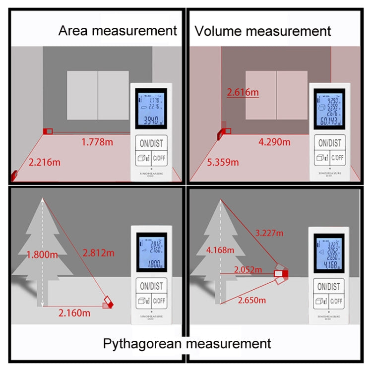 8. With multiple measurement modes such as distance, volume, area measurement, Pythagorean measurement, etc., to ensure you complete the work quickly, very suitable for home, construction and industry, especially for indoor use