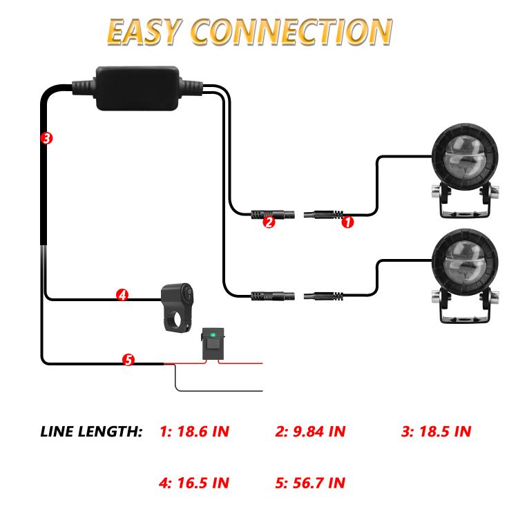 3. The integrated design of the waterproof harness switch and the standardized waterproof connector treatment of the spotlight wiring port ensures that the spotlight has a longer service life. The built-in high-power control ballast can better stabilize the voltage and current, reduce the probability of spotlight flickering or directly connect the original car battery for too long, resulting in power loss and other problems.