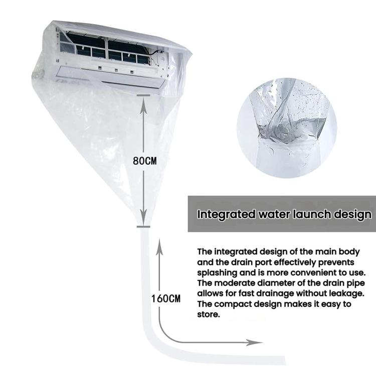 1. This transparent air conditioner cleaning cover is designed for efficient, mess-free maintenance of indoor/outdoor AC units. Available in 2 sizes (Small: less than 2.5m circumference; Large: less than 3.5m circumference), it ensures 360° visibility during cleaning.