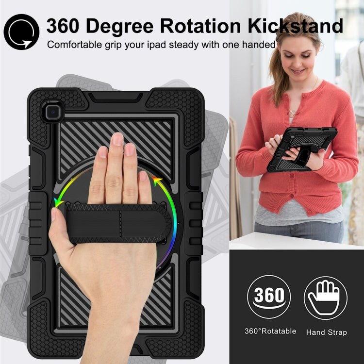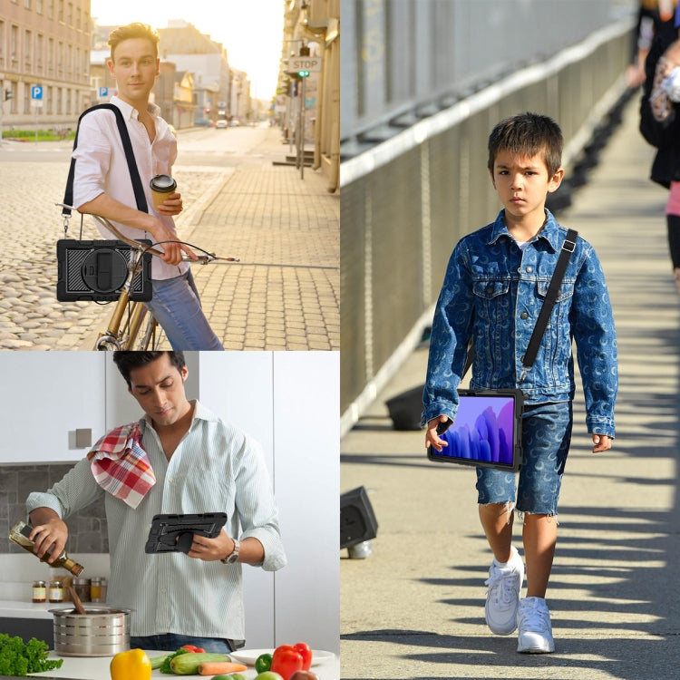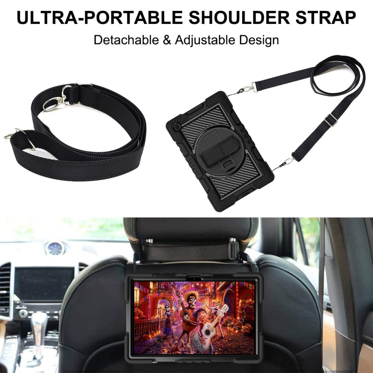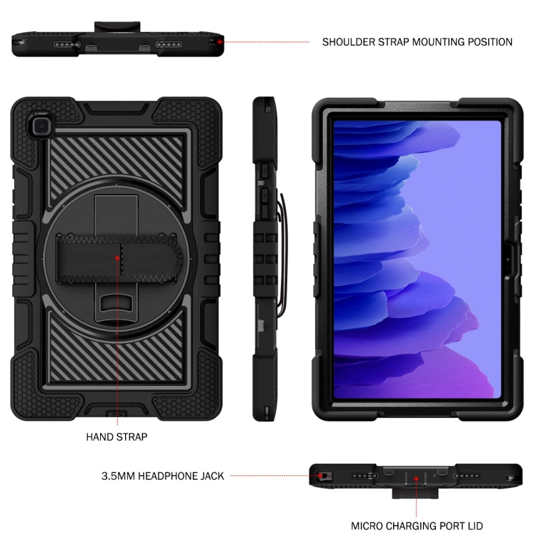 360 Degree Rotation Contrast Color Shockproof Silicone + PC Case with Holder & Hand Grip Strap & Shoulder Strap For Samsung Galaxy Tab A7 10.4 (2020) T500/T505(Black)
