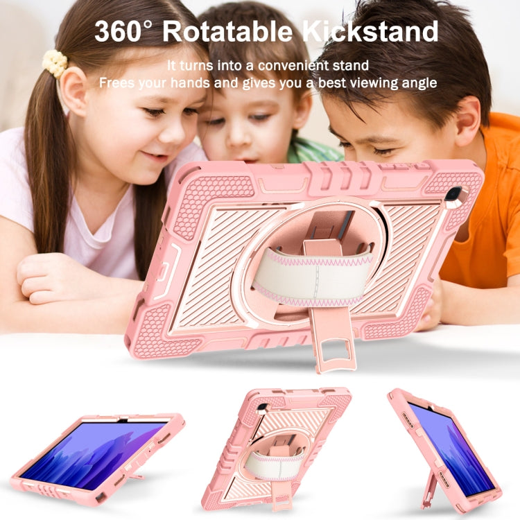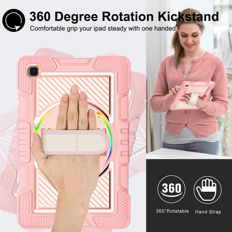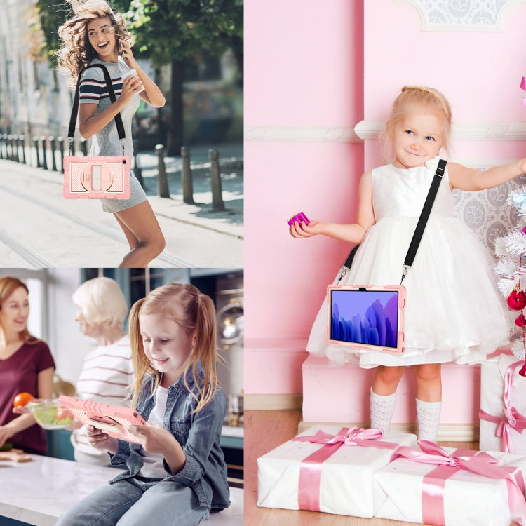360 Degree Rotation Contrast Color Shockproof Silicone + PC Case with Holder & Hand Grip Strap & Shoulder Strap For Samsung Galaxy Tab A7 10.4 (2020) T500/T505(Rose Gold)